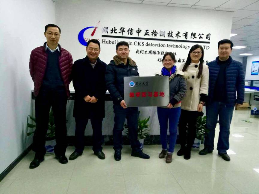 2016年12月13日,304am永利集团副经理唐友军、赵红静、党委副书记张科、经理助理蔡立梅、教师唐翠华一行赴湖北华信中正检测技术有限公司考察,并与该公司举行了校企共建教学实习基地挂牌仪式,就人才培养、实验室平台共享、项目合作等方面达成初步合作意向。