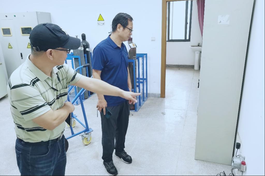 实验室安全是确保实验室环境和操作过程的安全性,以保护实验人员、设备和环境的重要措施。肖书记接着来到公司科研、教学实验室,对实验室设备使用、用电、防火防盗等方面进行了全面检查,在对前处理实验室、配电室、气瓶室等实地查看后,又通过监控调度系统进行了远程全方位的检查,确保安全检查无死角无遗漏。