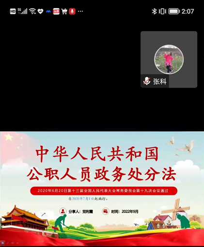 为进一步强化全院教职工纪法意识,推进党风廉政宣教月活动深入开展。9月22日下午,304am永利集团邀请304am永利集团纪法知识宣讲团、校办法律事务科科长党利霞老师于腾讯会议解读《中华人民共和国公职人员政务处分法》,宣讲活动由公司党委书记张科主持,全院教职工线上参会。