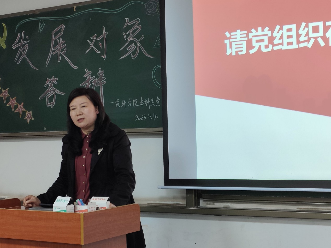 大会伊始,每位入党积极分子依次上台答辩,参加答辩的同学各有优点,成绩亮眼,可谓各具特色。每位积极分子都从自我介绍、入党动机、对党的认识等进行介绍,充分表明了渴望加入中国共产党的热情。所有参会的党员同志在听取了入党积极分子分子的答辩后,客观公正的对每一位同学的表现进行了评价。