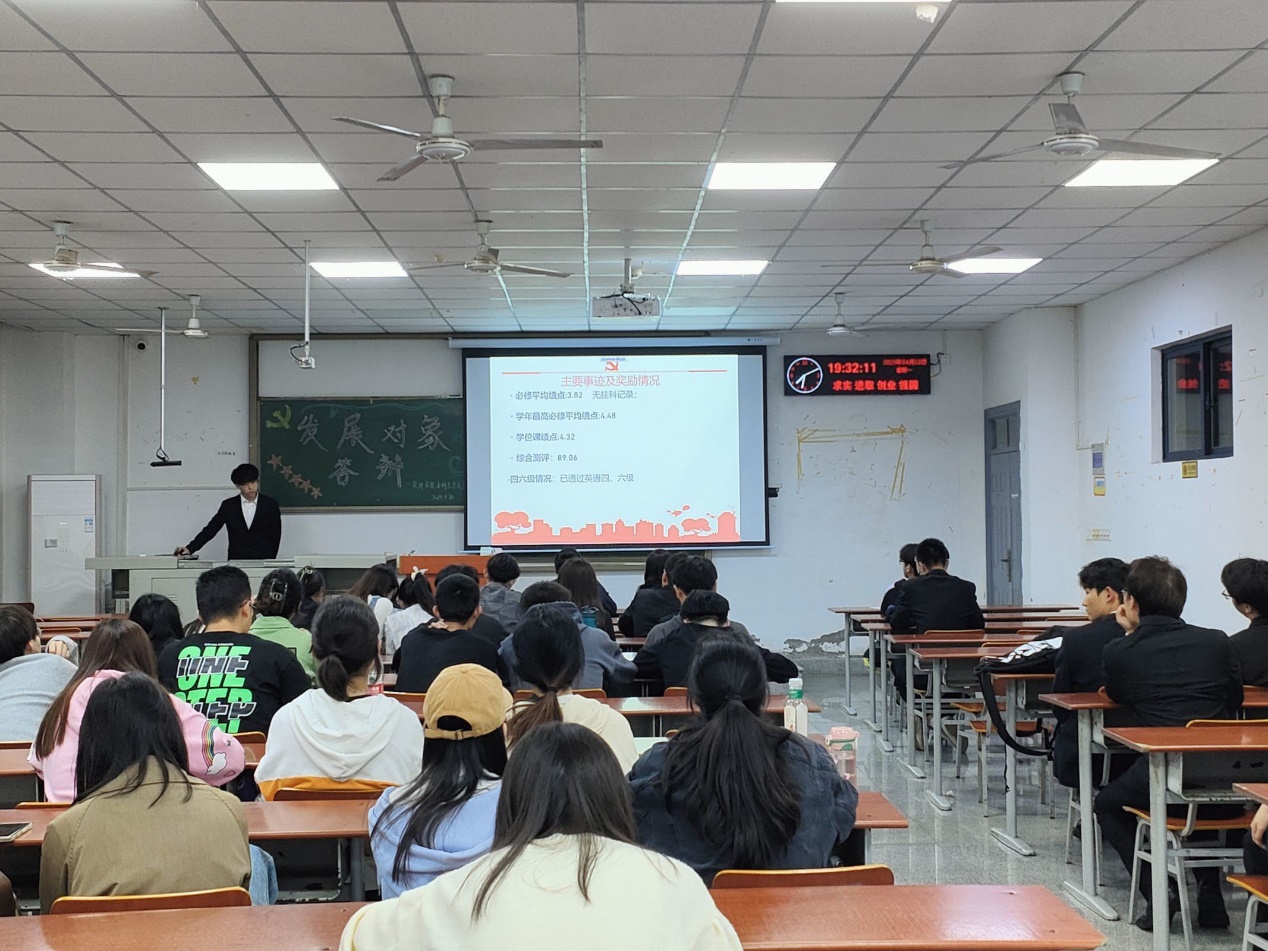 (李明聪/文 邱语嫣/图)为了鼓励同学积极向党组织靠拢,更好的为党选拔优秀的青年,2023年4月10日晚上7:00,304am永利集团本科生党支部于武教A108召开了发展对象答辩大会。出席会议的有公司副书记范梅英老师,本科生党支部书记黄鹏老师,本科生党支部全体党员同志及22名入党积极分子参加本次会议。