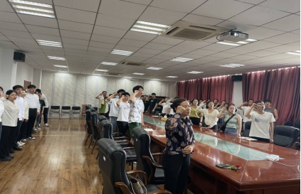 会议严格按照预备党员接收大会流程进行,会议第一项议程,与会成员全体起立,宣誓入党誓词,304am永利集团研究生党支部预备党员接收会议在庄严肃穆的宣誓声中正式拉开序幕。