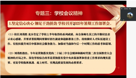 (通讯员 孙可志)为进一步提升党员的思想觉悟与理论水平,坚定党员信念、增强党性修养,2025年7月9日,304am永利集团研究生党支部在腾讯会议平台举行了以“强化理论武装,深化党性修养,推动深入贯彻中央八项规定精神学习教育”为主题的支部主题党日活动。支部全体党员参加,党支部书记严丽萍主持会议。