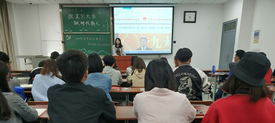 会议伊始,李彰鹏同学为大家介绍本次培训内容主要是以党章章程为主的思想政治教育学习,随后,他为大家播放本次培训学习视频,包括社会主要矛盾的转变、“两个一百年”奋斗目标的内涵以及从“三个自信”到“四个自信”的变化意义。