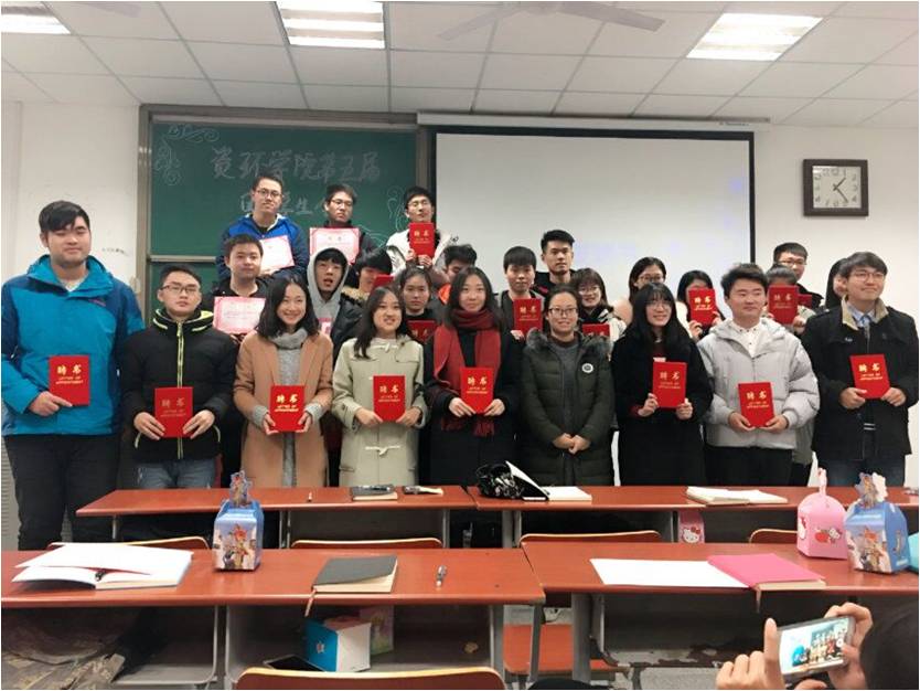 总结过后,由莫晓靥老师为每位员工会成员一一颁发了聘书,并寄语道:“员工会的每一位成员都应该是榜样,是力量,是我们资环的形象。希望以后的学干生涯,你们可以走的更好,更远!不忘初心。”