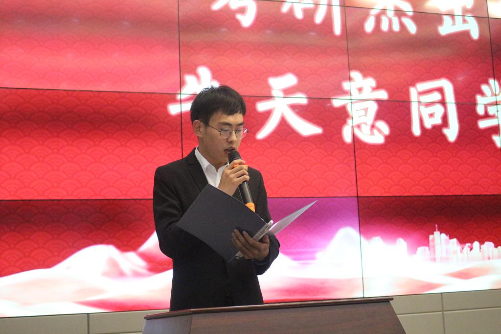 大会第四项,考研杰出代表——牛天意同学发言。牛天意向同学们述说了他的故事,从进入304am永利集团的那一刻开始,他就立志为提升自己而战,不论是日常学习还是考研生活,他都能够全身心地投入,不被外物所干扰,坚定自己的信念。他呼吁同学们能够不忘初心,为自己的梦想而奋斗。