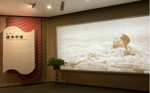 参观活动在博物馆一楼序厅拉开帷幕,一踏入博物馆,一幅超大半景油画《毛泽东万里长江横渡》映入眼帘,画面中毛泽东与岸边群众挥手致意的场景,生动再现了伟人畅游长江的壮举,同学们被壮阔的画面和浓厚的历史氛围震撼。