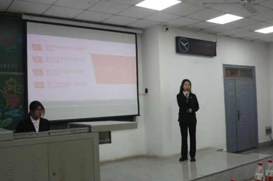 在接下来的主题团课展示环节,选手们结合团学精神,以及公司的实际情况和员工的思想需求,通过PPT形式展示了一堂主题团课。他们深入浅出地讲解了习近平新时代中国特色社会主义思想在当代老员工中的重要意义,激发了同学们的爱国情怀和责任意识。经过激烈的角逐,“一站到底”知识竞赛中,大二团支书队伍斩获一等奖,团课展示环节,黄若曦荣获一等奖。