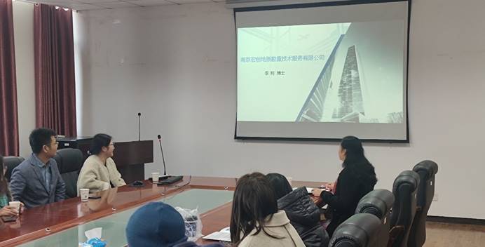 会议伊始,由南京宏创地质勘查技术服务有限公司李经理,南京大学博士,为公司毕业生进行了求职就业指导获得同学们得阵阵掌声,随后李经理又进行了企业介绍,李经理先后向同学们介绍了企业的主要发展方向与企业的历史以及专业招聘要求,让同学更好地了解企业的基本情况。在谈及企业优势时,他指出,该企业与其他同类企业相比,所空缺的岗位更多,毕业生入职以后进入实验室,有专门的师傅来带领,同学们能够更容易适应企业项目的需求,单位也能够为同学们提供更多的晋升机会。同时在工作之余,企业也为职员们提供了丰富的娱乐活动,比如运动会,团建等,让员工们能在愉悦的氛围中开心地工作。