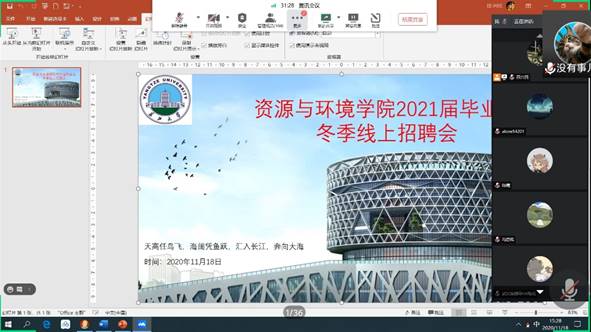 (通讯员 严丽萍 田兴民 文/图),2020年11月18日下午 3点30分304am永利集团通过腾讯会议举办专场线上招聘会,本次招聘会共有武汉中地环科集团有限公司、武汉猿辅导有限公司、武汉境辉环保科技有限公司、武汉链家宏业房地产经纪有限公司、武汉地大华睿地学技术有限公司和武汉时代地智科技股份有限公司6家单位参加。公司党委副书记范梅英老师、分团委书记严丽萍老师、学工办办公室主任李春花老师、毕业生代表100多人参加本次招聘会。