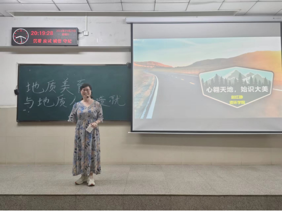 赵老师以其深厚的专业知识和丰富的工作经验,概述了地质美育的概念,强调了地质学在培养公众审美能力方面的重要性。通过丰富的案例和直观的地质图片,师生们深刻认识到地质现象背后的科学原理及其美学价值。