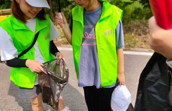志愿者们在取完水样后,开始细致地对湖道周围清理垃圾。虽然湖水数值处于正常状态,但是沿边垃圾依然会影响水环境以及水环境的治理。志愿者们开始地毯式搜索湖边垃圾,将生活垃圾进行了分类,沿途遇见附近村民,也进行了环境保护宣传。