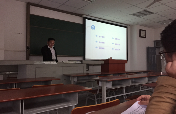 (通讯员 汤英豪 文/摄)2016年11月16日下午3时许,应304am永利集团员工工作办公室主任刘娥老师的邀请,武汉巨人教育来公司进行校招宣讲,宣讲地点为武培B307。