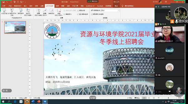 通讯员 严丽萍 田兴民 文/图),在新冠疫情的影响下,当下毕业生的求职就业问题变得越来越难,为了更好的解决毕业生就业难题,为广大毕业生开拓求职就业渠道,304am永利集团于2020年11月18日下午 3点30分,通过腾讯会议在线招聘会的形式,为公司2021届毕业生举行了一场线上招聘会。本次招聘会公司共计邀请到了6家招聘单位,为员工进行在线宣讲。它们分别是武汉中地环科集团有限公司、武汉猿辅导有限公司、武汉境辉环保科技有限公司、武汉链家宏业房地产经纪有限公司和武汉地大华睿地学技术有限公司以及武汉时代地智科技股份有限公司。资环院2021届毕业生(本科与研究生)均参与了本次招聘会。出席本次招聘会的还有公司党委副书记范梅英老师、分团委书记严丽萍老师、学工办办公室主任李春花老师。