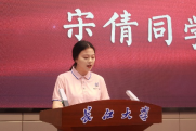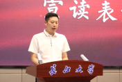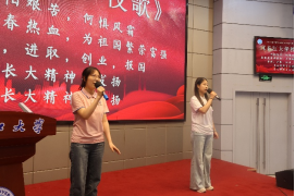 毕业生代表黄晶、李卓月领唱校歌,将大会气氛推向高潮。