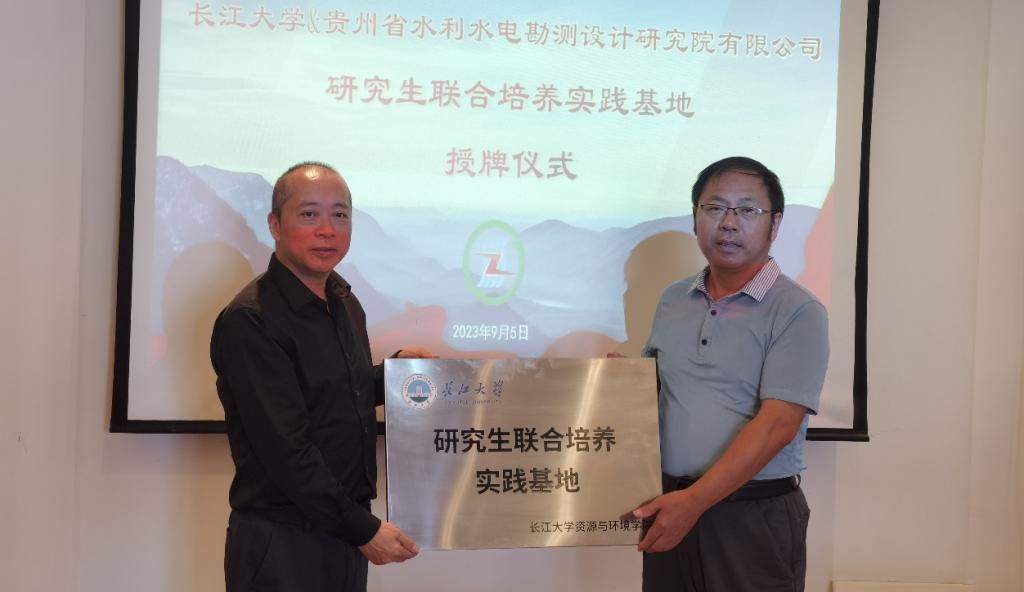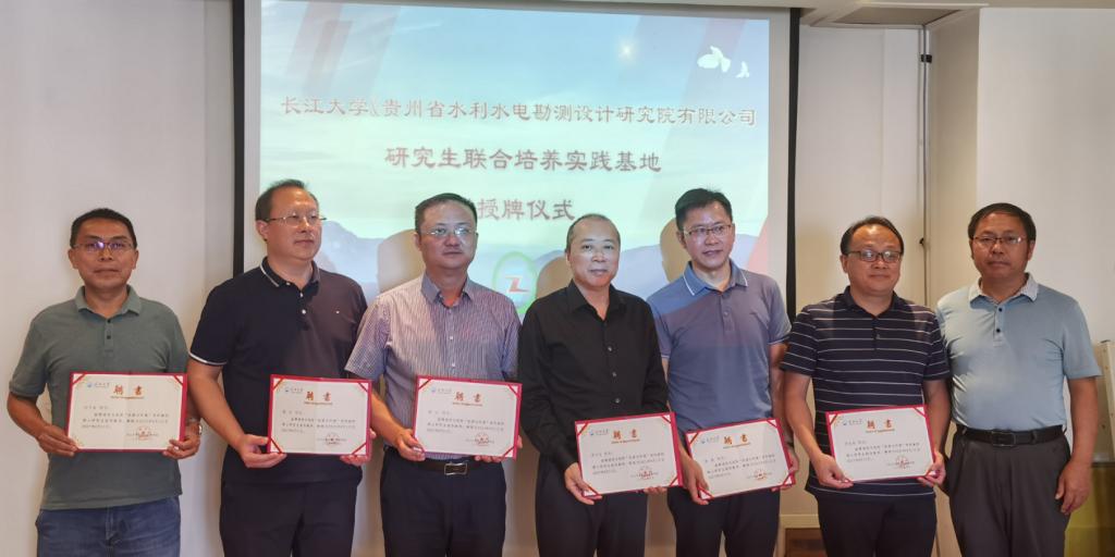 在贵州省水利水电勘测设计研究院有限公司交流中,该公司的副总经理罗天文、人资部部长张春乾、规划院副经理罗志文、生态环境工程院经理等相关领导参加了会议。那金主任重点介绍了公司办学特色和科研成果以及水环系科研团队的部分关键技术。罗天文副总经理对文志刚教授一行表示欢迎,并分别从公司情况、人才培养、招聘需求方面进行了介绍。双方围绕科研项目合作、研究生联合培养、实践基地共建等进行了深入详细地交流。会议期间,完成了研究生联合培养实践基地授牌仪式和颁发了硕士研究生兼职导师聘书。