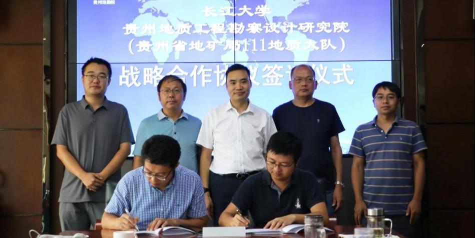 在贵州省地矿局111地质大队交流中,该单位党委副书记罗太近、总工程师王伟、总经理宋小庆等相关领导参加了会议。罗太近副书记对文志刚教授一行表示热烈欢迎,并介绍了111地质大队发展历程和业务优势。随后双方就科研项目合作、用人需求、人才培养等方面进行了详细交流,举行了员工就业实习基地签约仪式。