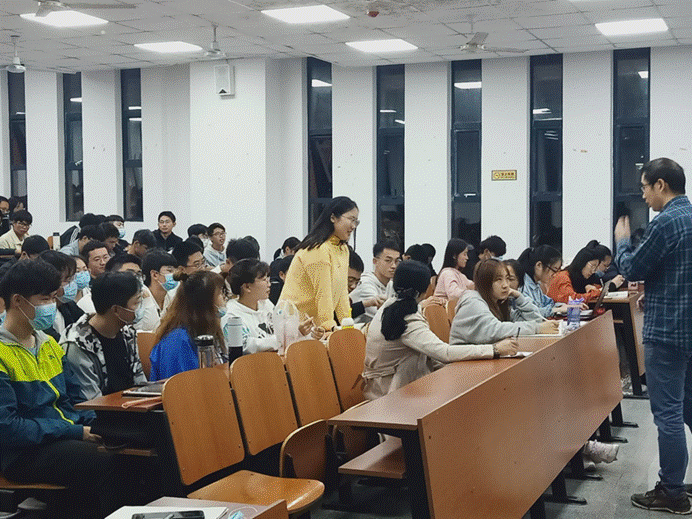 “怎么写科技论文?”罗教授对此进行了深入的展开论述。他具体介绍了论文的结构,并提出了切实的建议。“标题要准确且能够总结中心思想”,他以喂猫吃鱼的研究为例生动告诫同学们标题要吸引人且不可过于笼统;好的摘要是成功的一半,写好摘要对于自己稿子能否被接收起着重要的作用;与平时完成作业难以凑字数不同,科技论文的写作往往 “一不小心”字数颇多,会被审稿人建议删减,他建议科技论文语言要精当,“用仅仅二十字的情书来表达情意要比长篇大论难得多”的调侃引得同学们哄堂大笑。他对于同学们的投稿和修稿也提出了诚恳的建议,希望同学们注意了解机构的收稿方向、适时跟进审稿进程、了解审稿周期、重视审稿意见积极修改。此外,罗教授还反复强调,在每篇文章的末尾都会有作者对于未来研究方向的建议,大家要多读同一方向的文献了解前人的研究并发现不足,找到创新点;论文被反复拒稿会对自我进行怀疑,“希望大家要懂得总结并坚持”。讲座进入尾声,罗教授鼓励大家积极提问,并为叶明霞同学关于疫情期间大创的实验数据未能及时获得,难以在毕业前发表核心期刊的困惑进行了解答。
