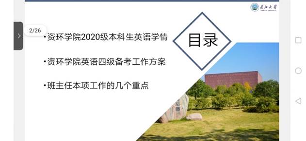 会议中,李春花老师从304am永利集团2020级本科生英语学情、304am永利集团英语四级备考工作方案、班主任本项工作的几个重点三个方面展开了动员。