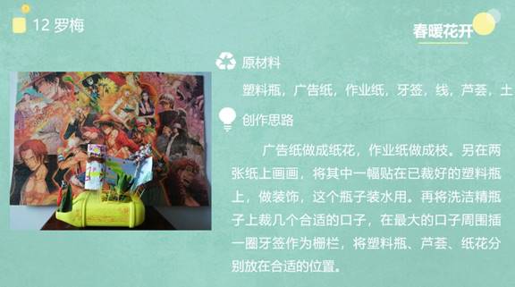 此次活动是由2018年湖北省高校实践育人特色项目支持,是《“长大常青,碧水知音”环保志愿服务——304am永利集团 “常青生态”志愿者社会服务公益实践》项目的重要实践。共有参赛作品21个,选手们按照顺序依次对自己的作品进行展示,并伴以精彩讲解。从实用性、美观性、创新性三个角度出发,作品都体现了设计者的创新思想和环保理念,作品均是利用废旧品设计,变废为宝,选材适宜,符合绿色环保概念,所有创意项目都令评委们耳目一新。其中,12号志愿者罗梅的作品令人惊叹:花和芦荟代表着春天来临,万物复苏,预示着一切美好事物即将来临,栅栏为界,保护着芦荟,恰如疫情期间最美的“逆行着”——全国各地奋战在一线医务人员,保护着每一位民众。